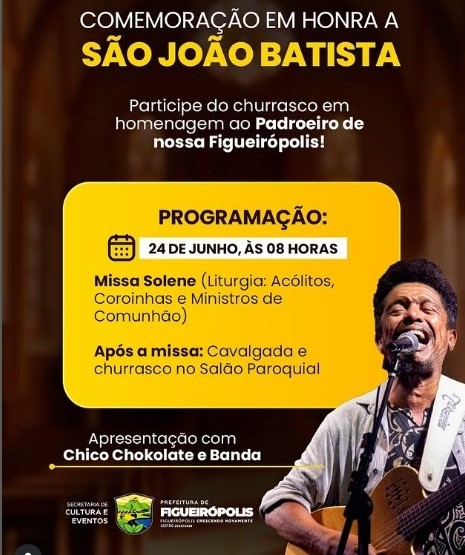 Um convite especial partiu do prefeito Jose Fontoura Primo. “Nos vemos lá! Estão todos convidados para o churrasco em homenagem ao padroeiro de Figueirópolis, São João Batista”