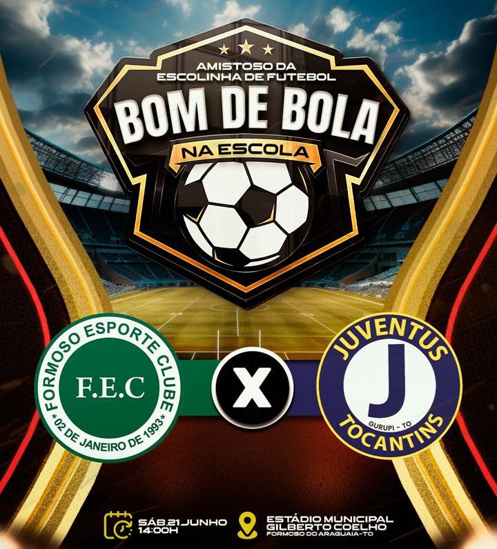 FORMOSO ARAGUAIA-TO – Projeto de futebol “Bom de Bola, Bom na Escola” desenvolvido pela Prefeitura de Formoso, através da Secretaria Municipal de Esporte, Juventude e Entretenimento com as categorias de base do FEC – Formoso Esporte Clube traz um grande amistoso neste sábado dia 21 de junho.