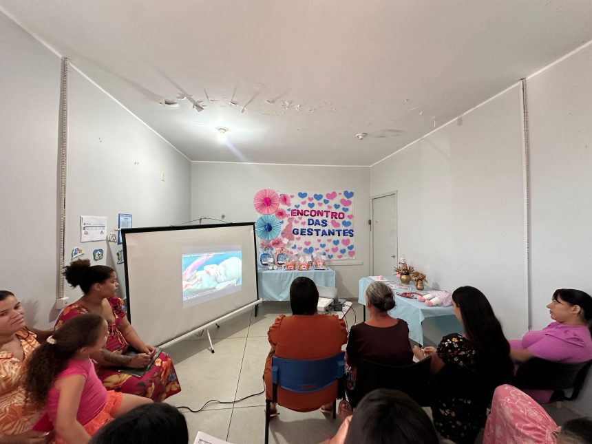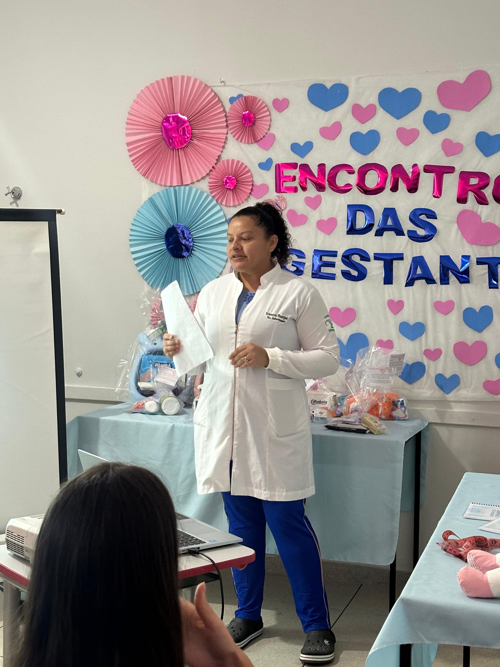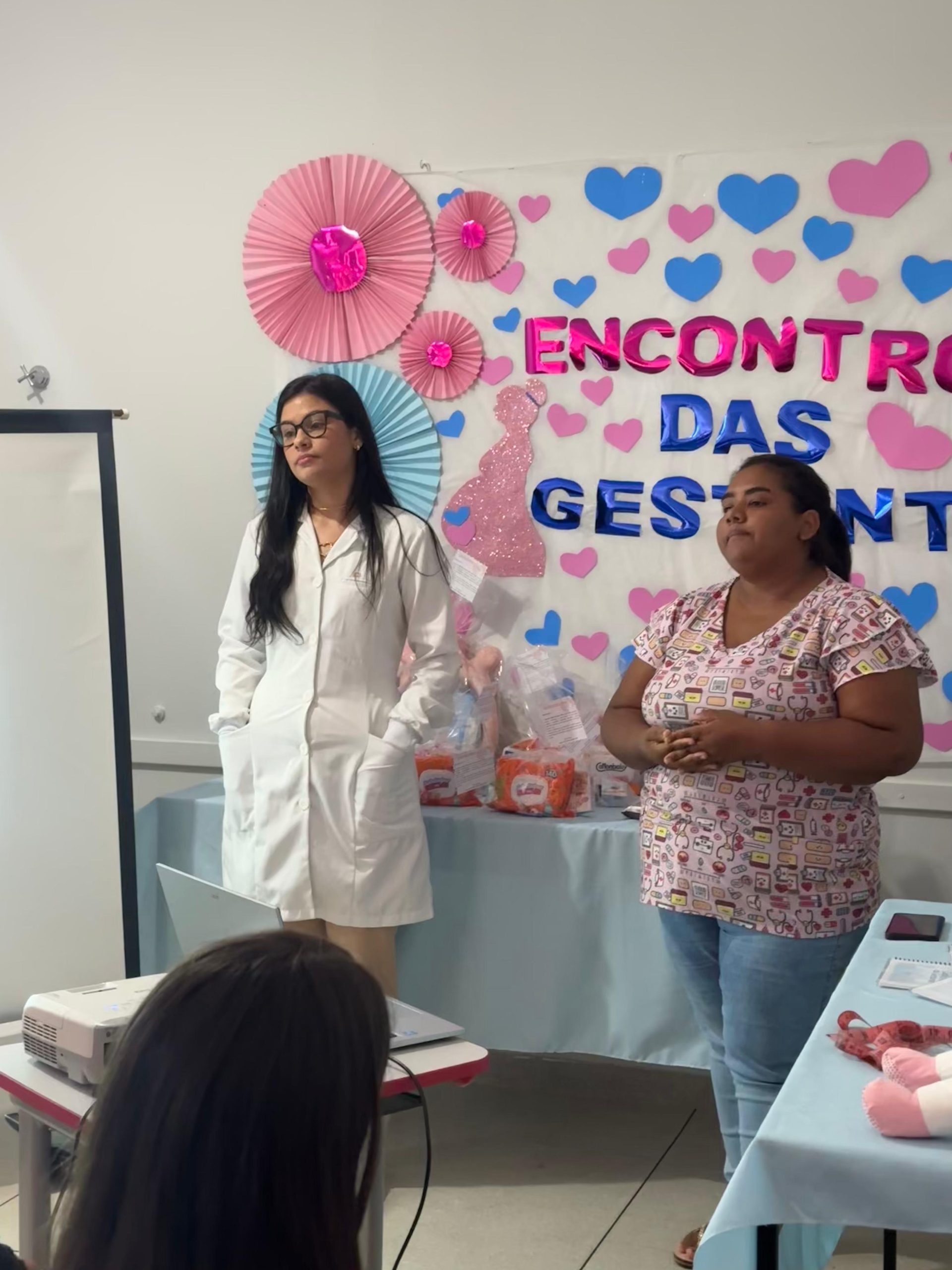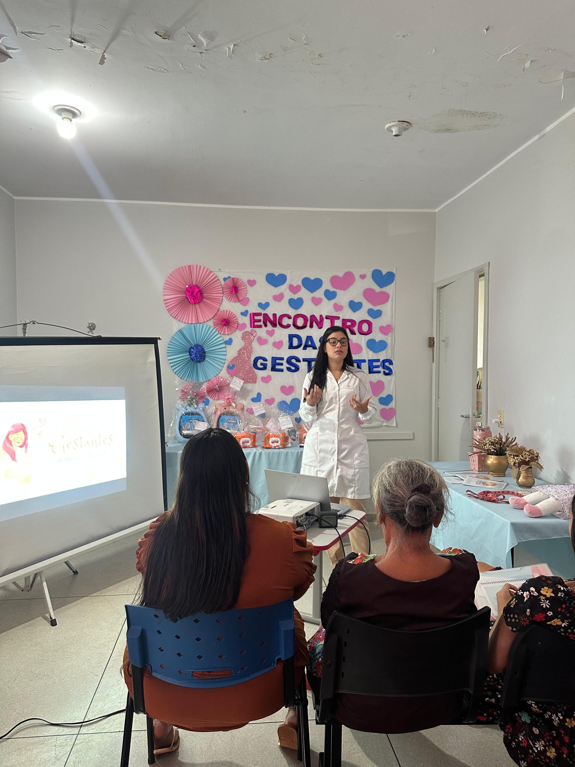 Profissionais da UBS compartilharam orientações importantes sobre o período gestacional e os cuidados com a saúde da mãe e do bebê, promovendo um momento de aprendizado e troca de experiências.