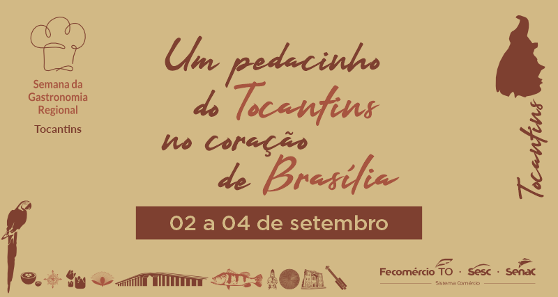O Sistema Fecomércio Tocantins, por meio do Senac e Sesc, participará entre os dias 1 e 4 de setembro de 2025, em Brasília (DF) da Semana da Cultura e Gastronomia Regional. A iniciativa reúne apresentações culturais e culinárias, menus especiais, além de degustações com foco em pratos e produtos típicos do estado do Tocantins.