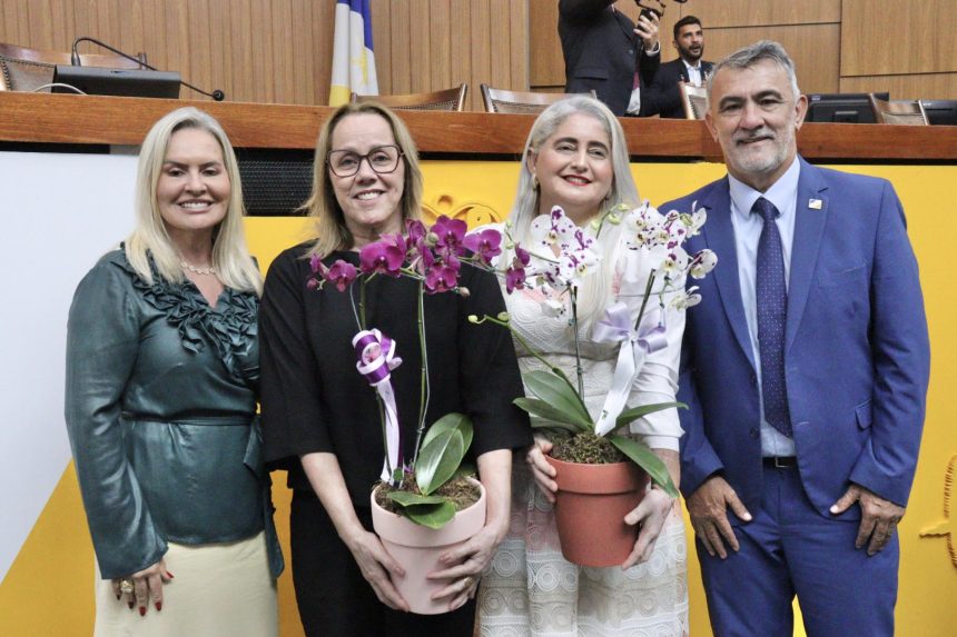 Em reconhecimento aos serviços prestados na Assembleia Legislativa do Tocantins (Aleto), o presidente da Casa de Leis, deputado estadual Amélio Cayres (Republicanos), homenageou a primeira servidora da Aleto, Eliane Barbosa, e uma das ascensoristas da Instituição com 15 anos de trabalho pela Casa, Simone Vieira. A honraria foi entregue na Sessão Solene especial em alusão ao Dia da Mulher, nesta quinta-feira, 13.