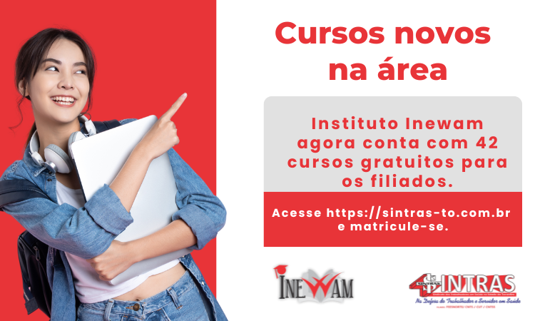 O Sindicato dos Trabalhadores em Saúde no Estado do Tocantins (Sintras), por meio do Instituto Educacional Inewam, ampliou sua grade de capacitações e agora oferece 42 cursos voltados à formação e qualificação de profissionais da saúde filiados ao Sintras.