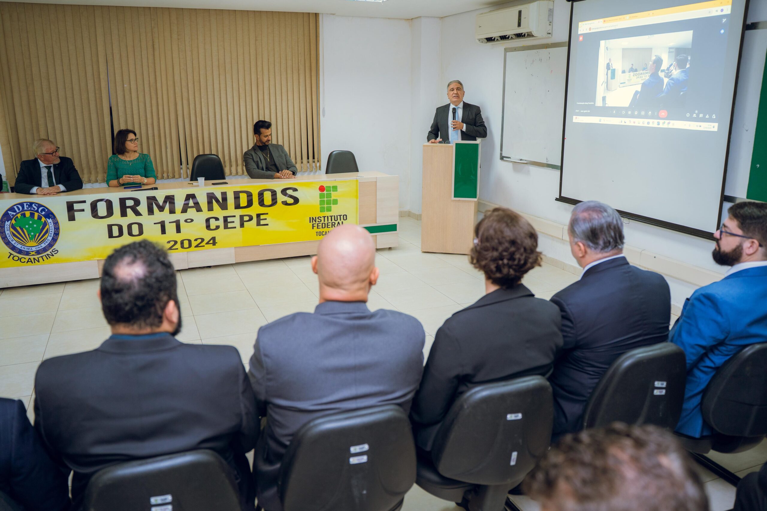 Associação dos Diplomados da Escola Superior de Guerra (ADESG) – Nacional e Delegacia do Tocantins, em parceria com o Instituto Federal de Educação, Ciência e Tecnologia do Tocantins (IFTO) – Campus Paraíso do Tocantins, realizou, nesta sexta-feira (21), a solenidade de formatura dos concluintes do 11º Ciclo de Estudos de Política e Estratégia (CEPE) 2024. O vice-governador Laurez Moreira, que esteve presente na cerimônia, destacou a importância da instituição e parabenizou os formandos.