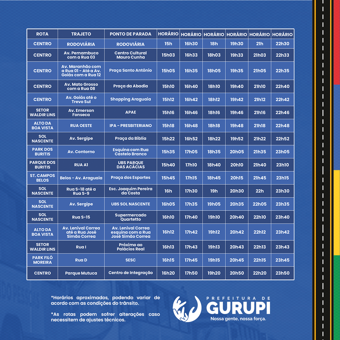 A Prefeitura ressalta que, embora estejam sendo divulgadas as informações detalhadas das rotas, o serviço de transporte público ainda está passando por ajustes para garantir um funcionamento ainda mais eficiente e satisfatório para toda a comunidade.