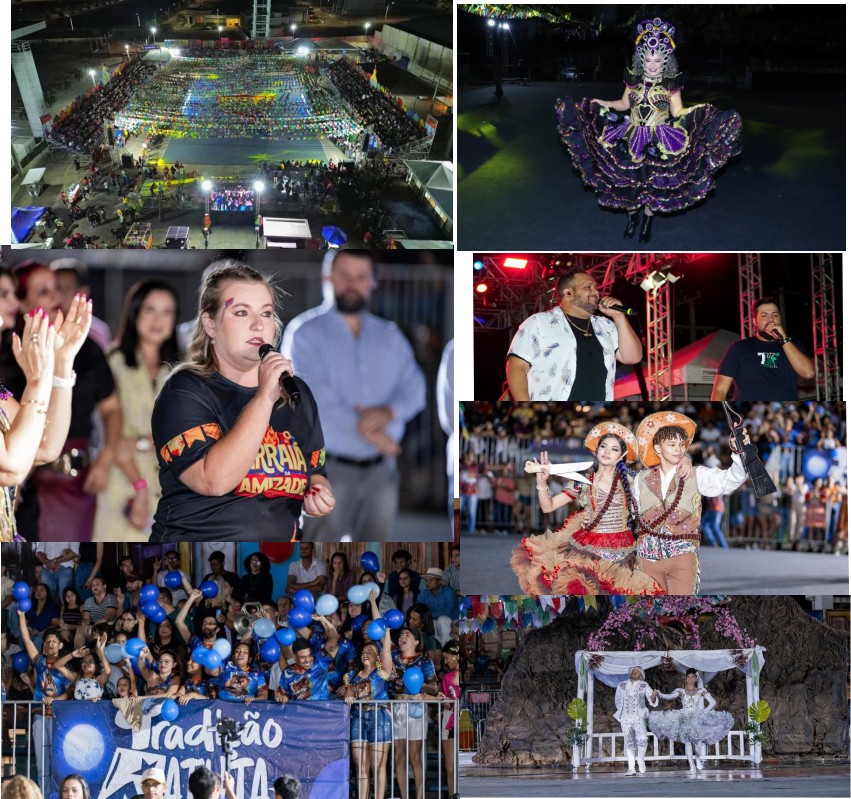 A prefeita Josi Nunes marcou presença na primeira noite, acompanhando atentamente cada apresentação, caracterizada com traje típico e demonstrando toda sua animação. Ela destacou a importância do Arraiá para o desenvolvimento cultural e econômico da cidade.