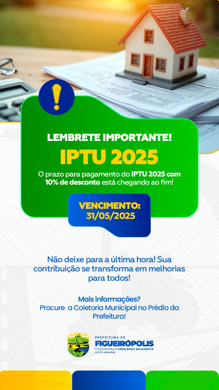 ATENÇÃO, FIGUEIROPOLIS – Prazo para garantir 10% de desconto no pagamento do IPTU 2025 está se aproximando do fim