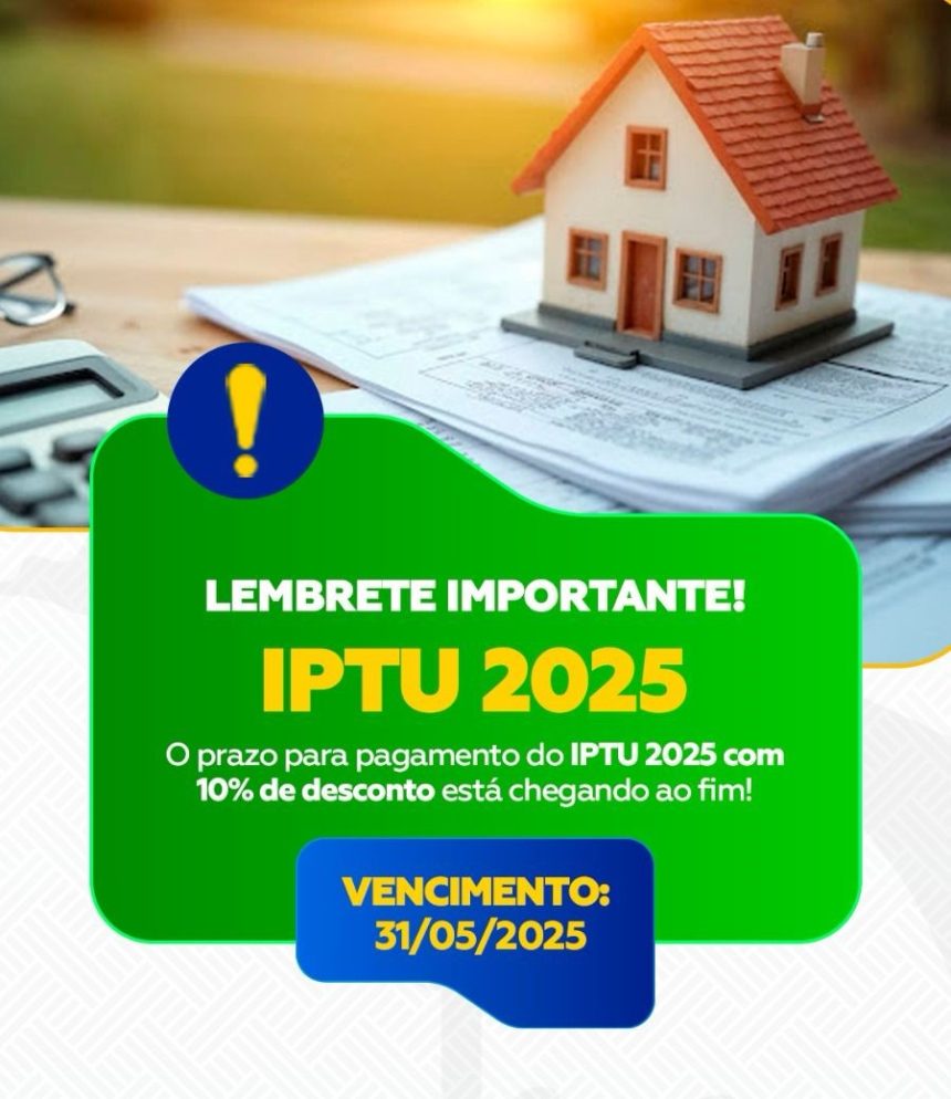 O prazo para garantir 10% de desconto no pagamento do IPTU 2025 está se aproximando do fim! Aproveite essa oportunidade para economizar e ainda contribuir com o crescimento da nossa cidade.