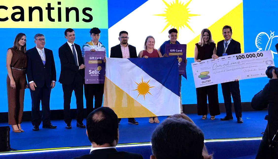 SÃO PAULO-SP – Os gestores escolares José Antônio Aguiar Gama, da Escola Estadual Professora Elizângela Glória Cardoso, de Palmas, e Amísia Cristina Souza Urzedo Neta, do Colégio Estadual José Seabra Lemos, de Gurupi, participaram nesta quinta-feira, 26, da solenidade de premiação da Olimpíada do Tesouro Direto de Educação Financeira (Olitef), realizada em São Paulo.