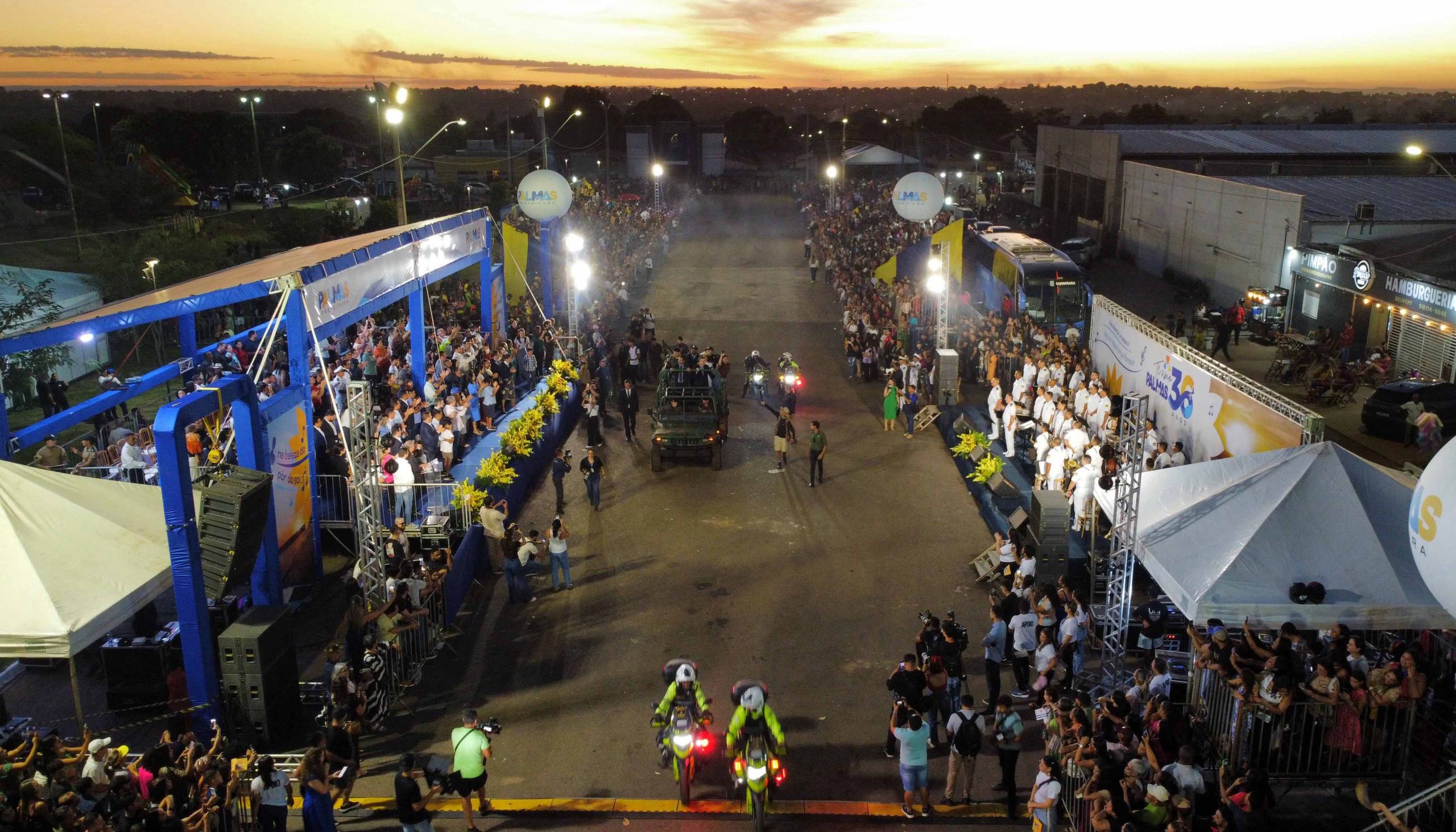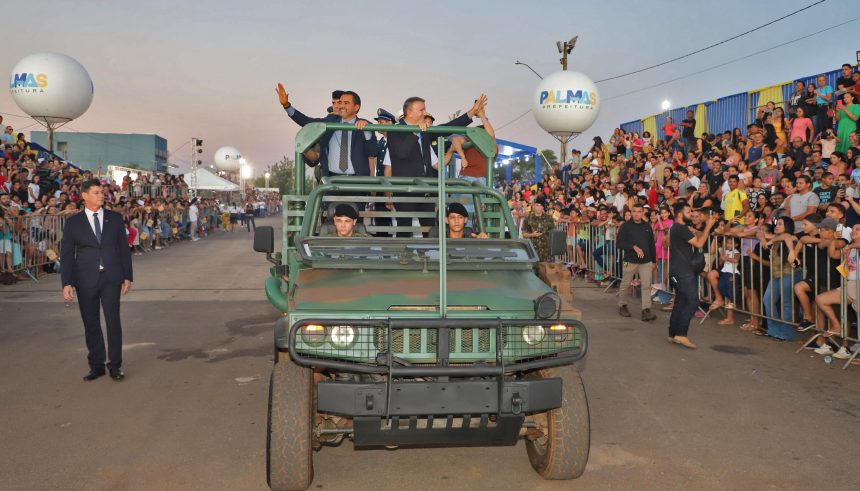 O governador do Tocantins, Wanderlei Barbosa, acompanhado da primeira-dama e secretária extraordinária de Participações Sociais, Karynne Sotero, participou, nesta terça-feira, 20, do desfile cívico-militar em comemoração aos 36 anos de fundação da cidade de Palmas. O evento reuniu autoridades, estudantes, militares e a população no estacionamento do Ginásio Ayrton Senna, em Taquaralto, para celebrar a trajetória de luta, crescimento e consolidação da capital tocantinense, a mais jovem do país.