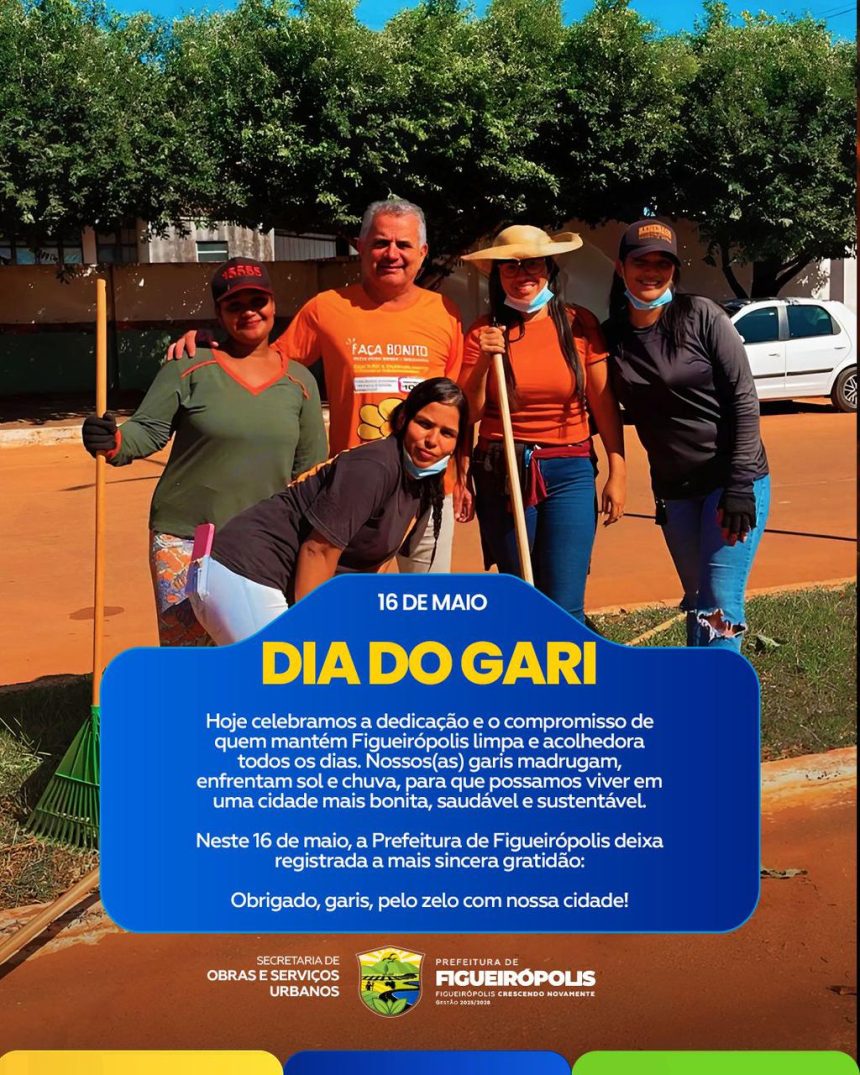 A Prefeitura de Figueirópolis do Tocantins agradece e parabeniza cada profissional da limpeza urbana pelo compromisso e pelo carinho com que cuidam do nosso município. Vocês fazem a diferença, todos os dias, diz um dos trechos da mensagem.