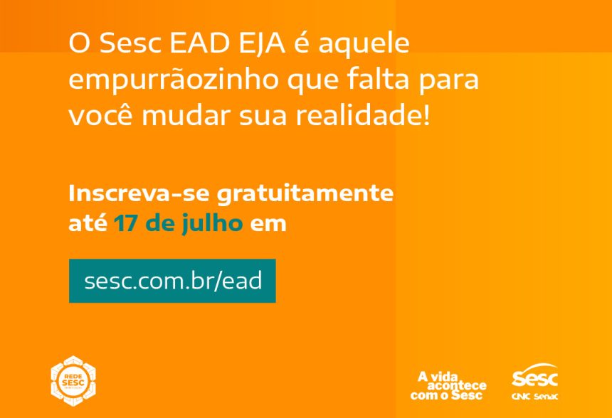 O Sesc está com inscrições abertas para o Sesc EAD EJA, que oferece a jovens e adultos formação gratuita no Ensino Médio, com qualificação profissional em produção cultural. São 2.002 vagas distribuídas entre 13 estados das regiões Norte, Nordeste, Sul e Sudeste. Interessados podem se inscrever, até 17 de julho, pelo site www.sesc.com.br/ead, onde está disponível o edital com mais informações sobre o processo seletivo. O início das aulas está previsto para 11 de agosto de 2025.