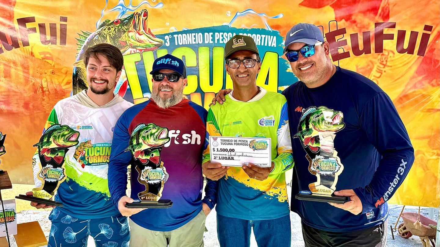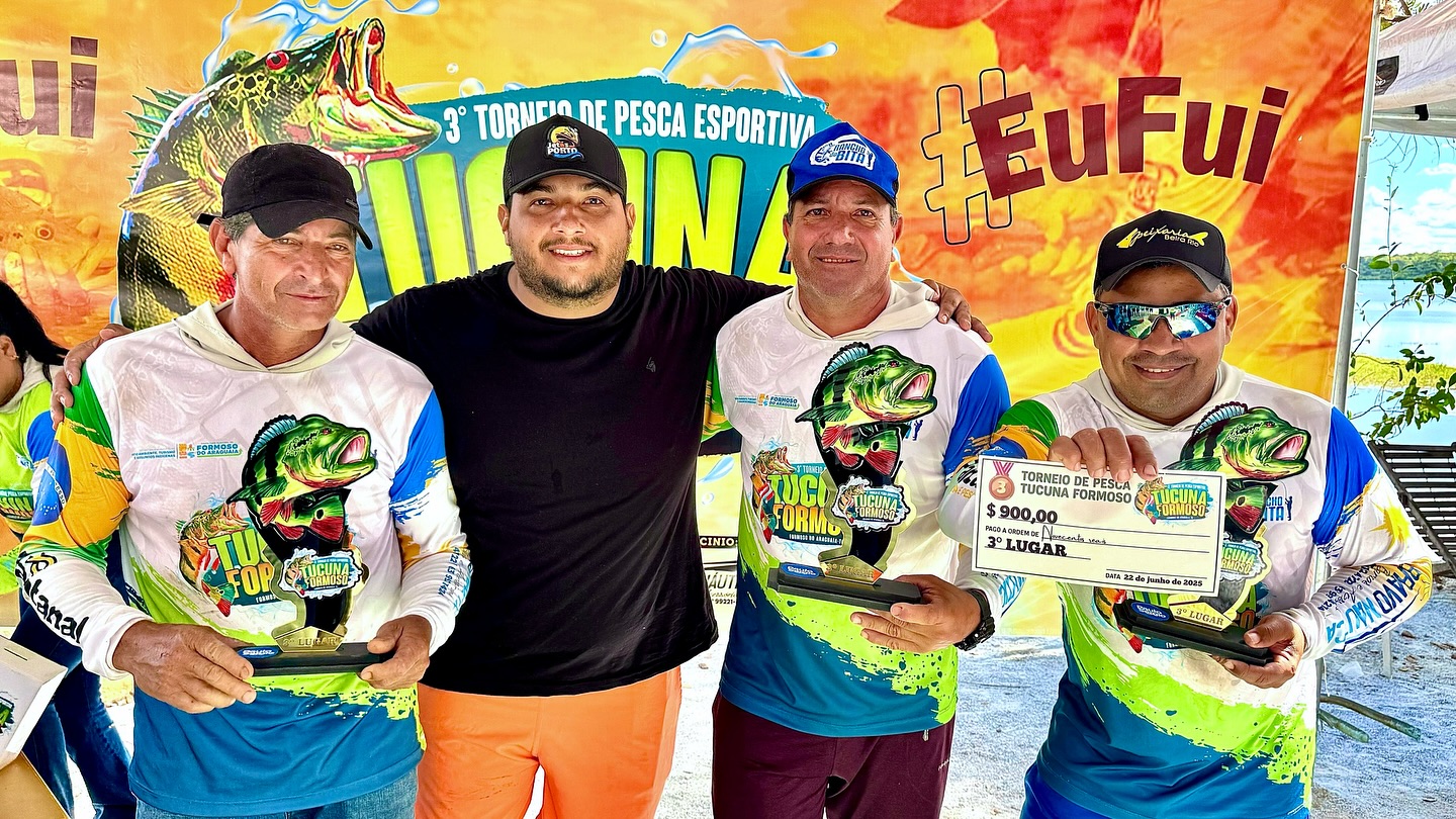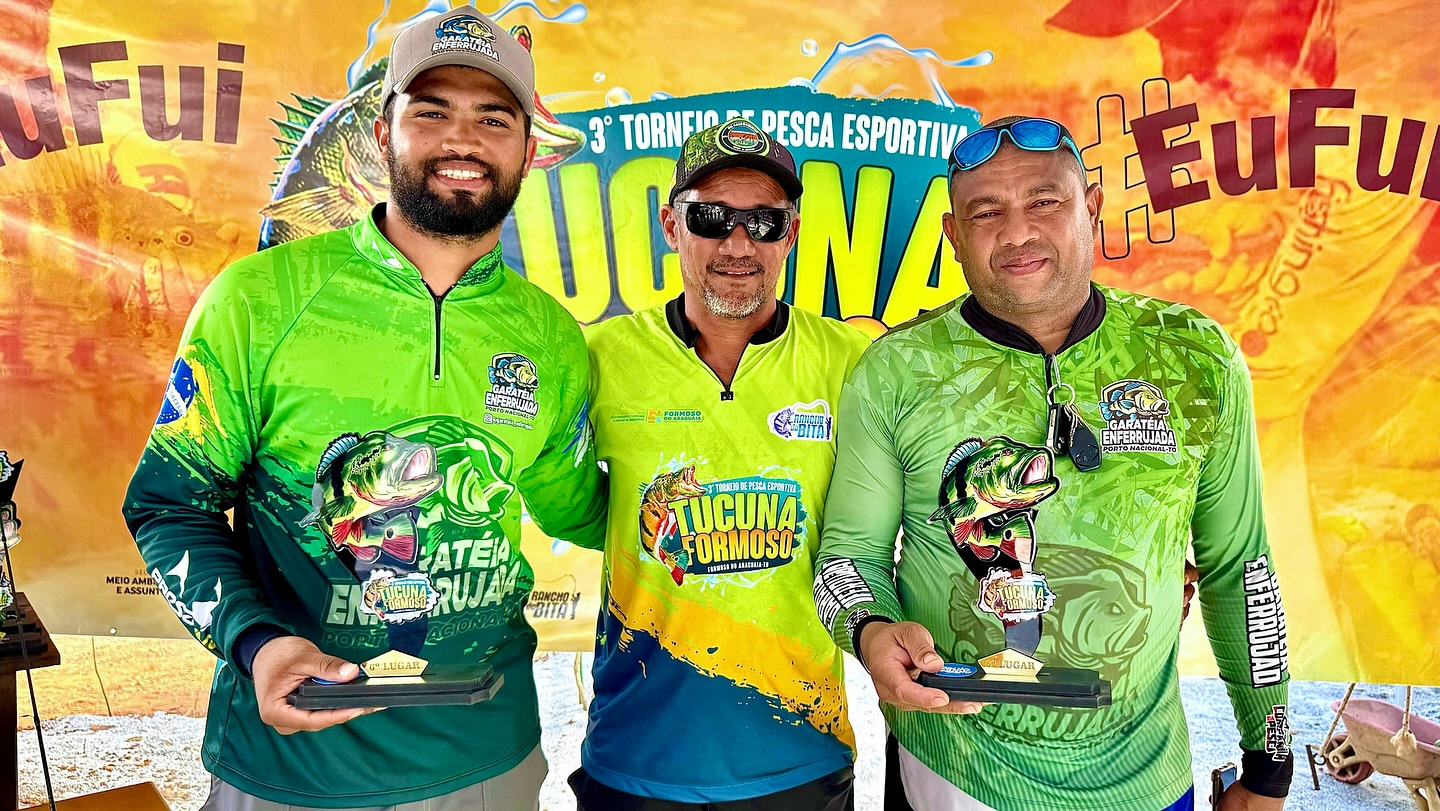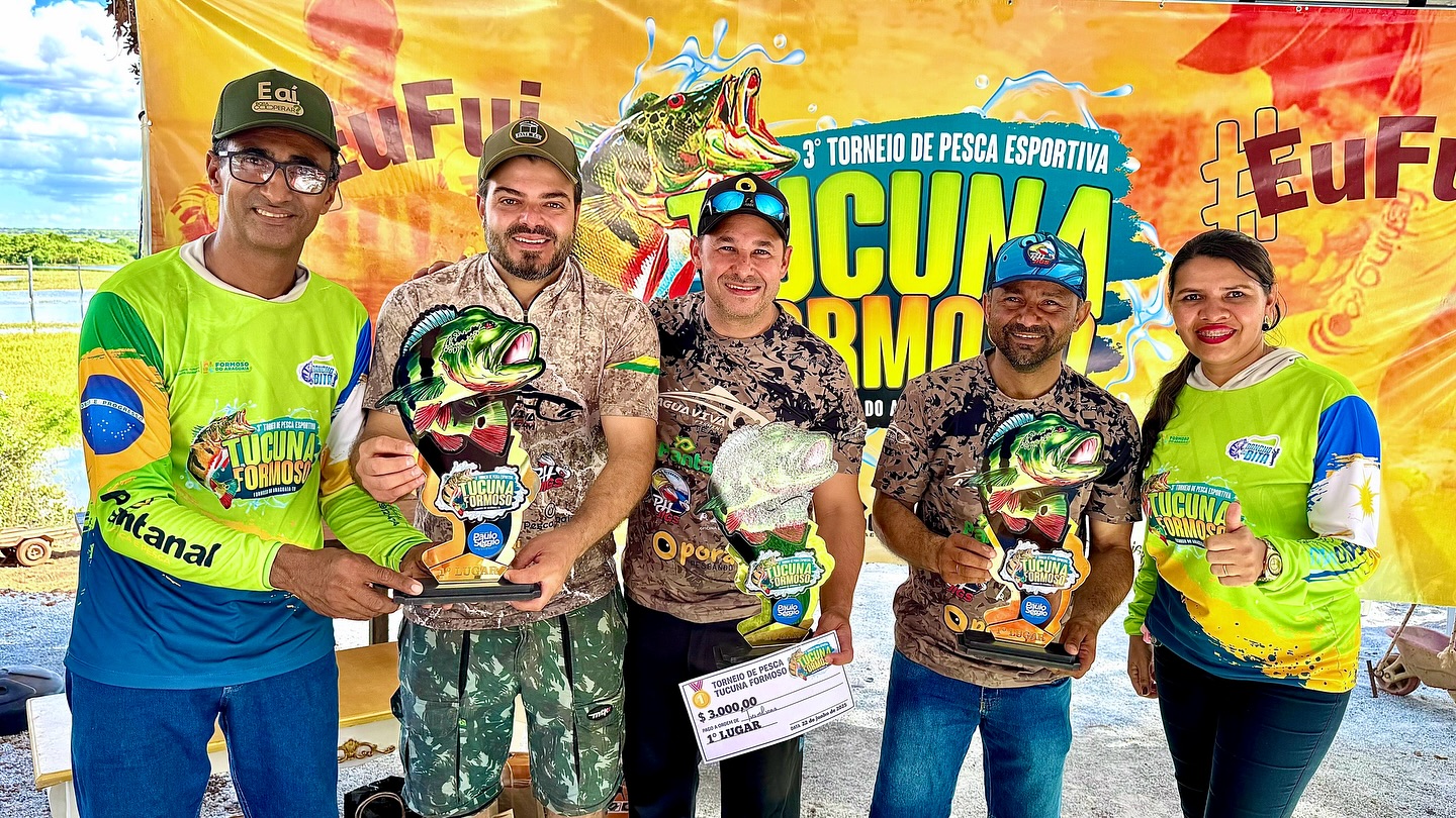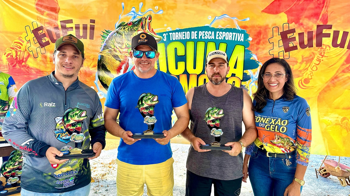 Em primeiro lugar – Equipe – “Água Viva Fishing Team” dos pescadores: Bernardo Espíndola, Jefson Lima e Lucas Perdona, levando para casa um prêmio de R$ 3.000,00 + troféu e medalhas.