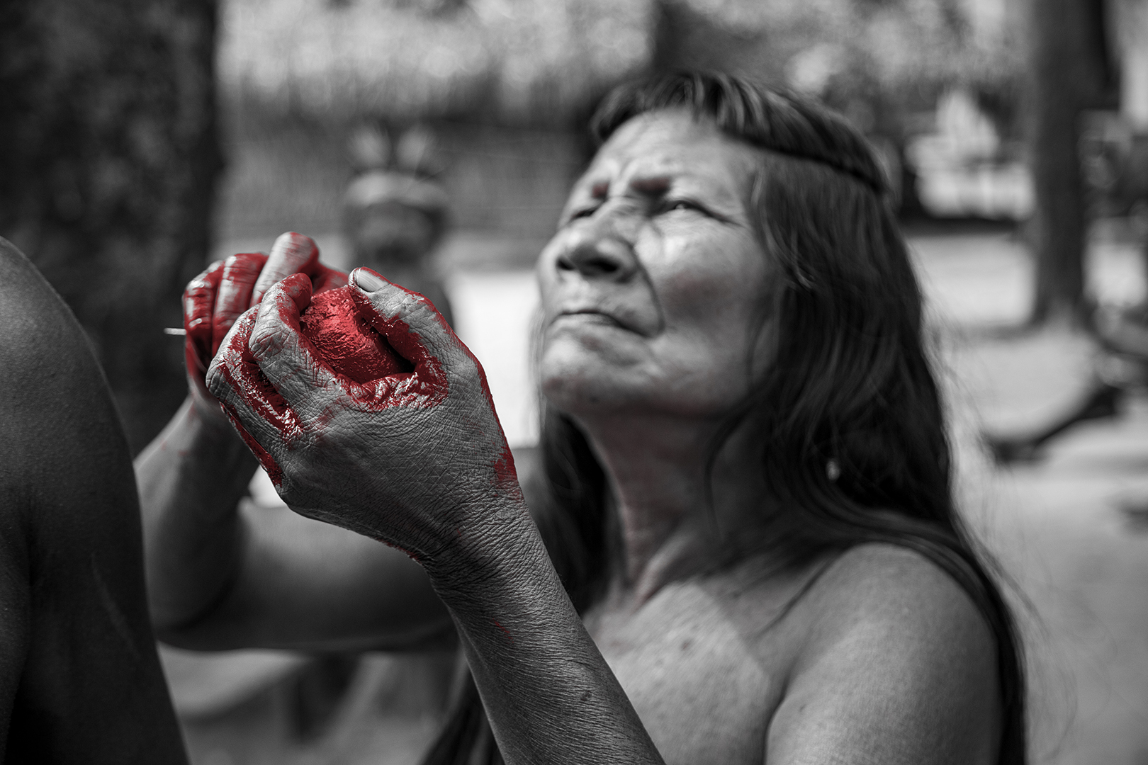 O ensaio é formado por oito imagens — um fragmento da exposição “Urucum: Sagrado Vermelho”, de 2024 — que retrata a relação dos povos indígenas Karajá e Krahô com o urucum. A mostra destaca o uso do fruto na cultura, na pintura corporal e na medicina, além de sensibilizar sobre a preservação ambiental e cultural.