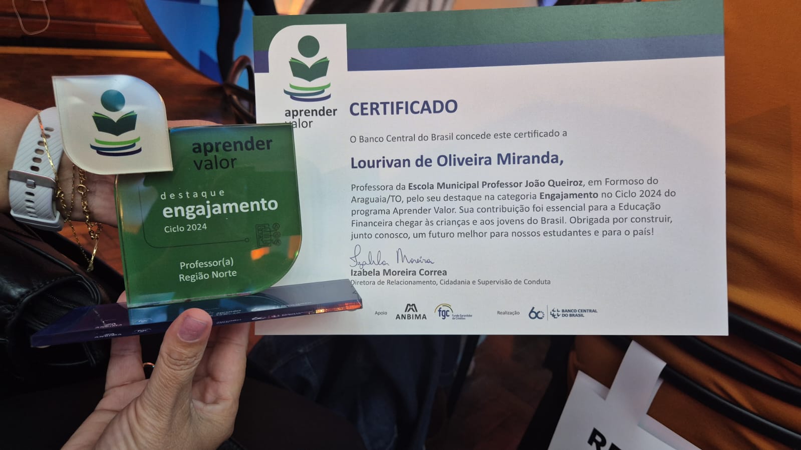 Da rede municipal de ensino de Formoso do Araguaia, Lourivan de Oliveira Miranda, da Escola Municipal Professor João Queiroz foi premiada como destaque na Região Norte do Brasil; recebendo certificado, troféu e premiação em dinheiro.