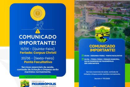 A Prefeitura Municipal de Figueiropolis, decretou e comunica que a quinta-feira, 19…
