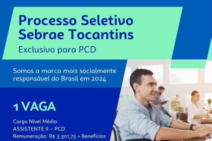 O Sebrae Tocantins abre as inscrições para o cargo de Assistente II,…