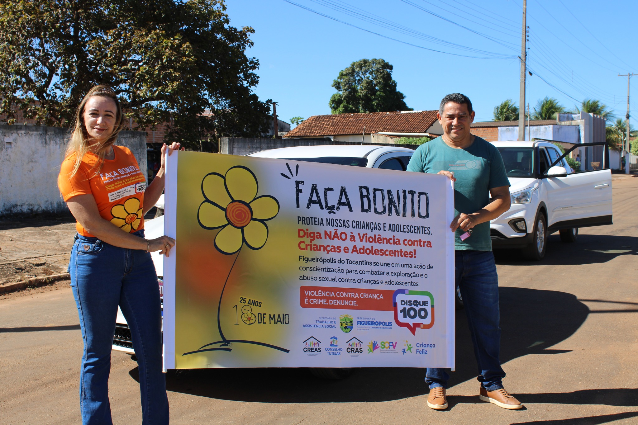 FIGUEIROPOLIS-TO – Na manhã do dia 15 de maio, a Prefeitura Municipal, por meio da Secretaria de Assistência Social, na pessoa da Senhora Primeira Dama e Secretaria de Assistência Social, Ademildes Fontoura, juntamente com a sua equipe do, CRAS, CREAS, SCFV (Serviço de Convivência e Fortalecimento de Vínculos) e Criança Feliz. Tendo como parceiro de grande relevância o Conselho do Tutelar juntos promoveram um adesivaço de conscientização, enfrentamento ao abuso e exploração sexual infantil (18 de Maio), orientando ações de prevenção e proteção, juntamente com toda a comunidade figueiropolina.