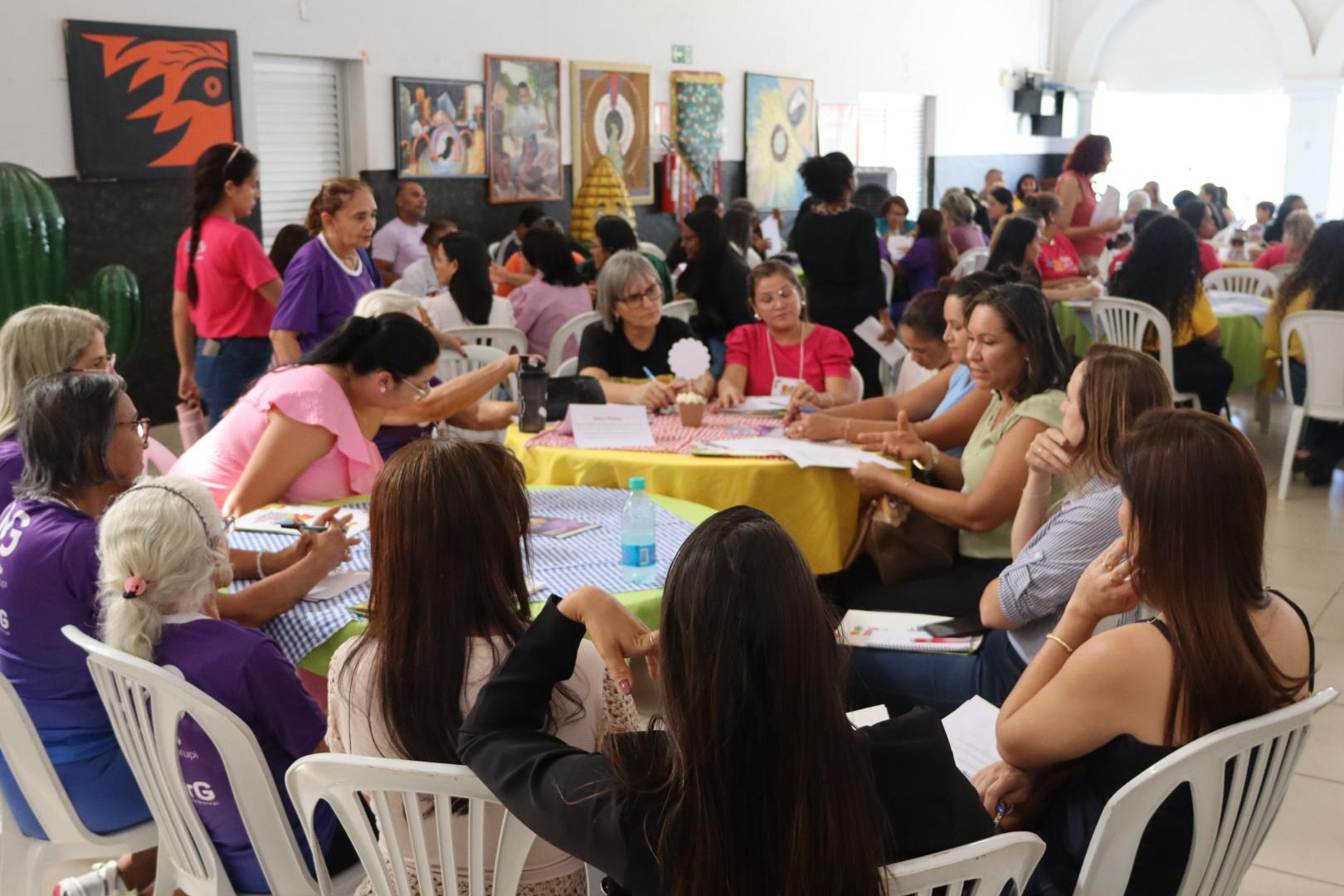 No período da tarde, a programação seguiu com a formação de grupos de trabalho, que discutiram sete eixos temáticos prioritários: Violência contra a mulher; Saúde da mulher; Empoderamento econômico e autonomia; Direitos das mulheres e igualdade de gênero; Educação e cultura; Saúde mental; e Direito ao território e sustentabilidade. Após os debates, cada grupo apresentou as propostas construídas de forma coletiva. Encerrando a conferência, foram eleitas as delegadas que representarão a região nas etapas estadual e nacional da Conferência de Políticas para as Mulheres.