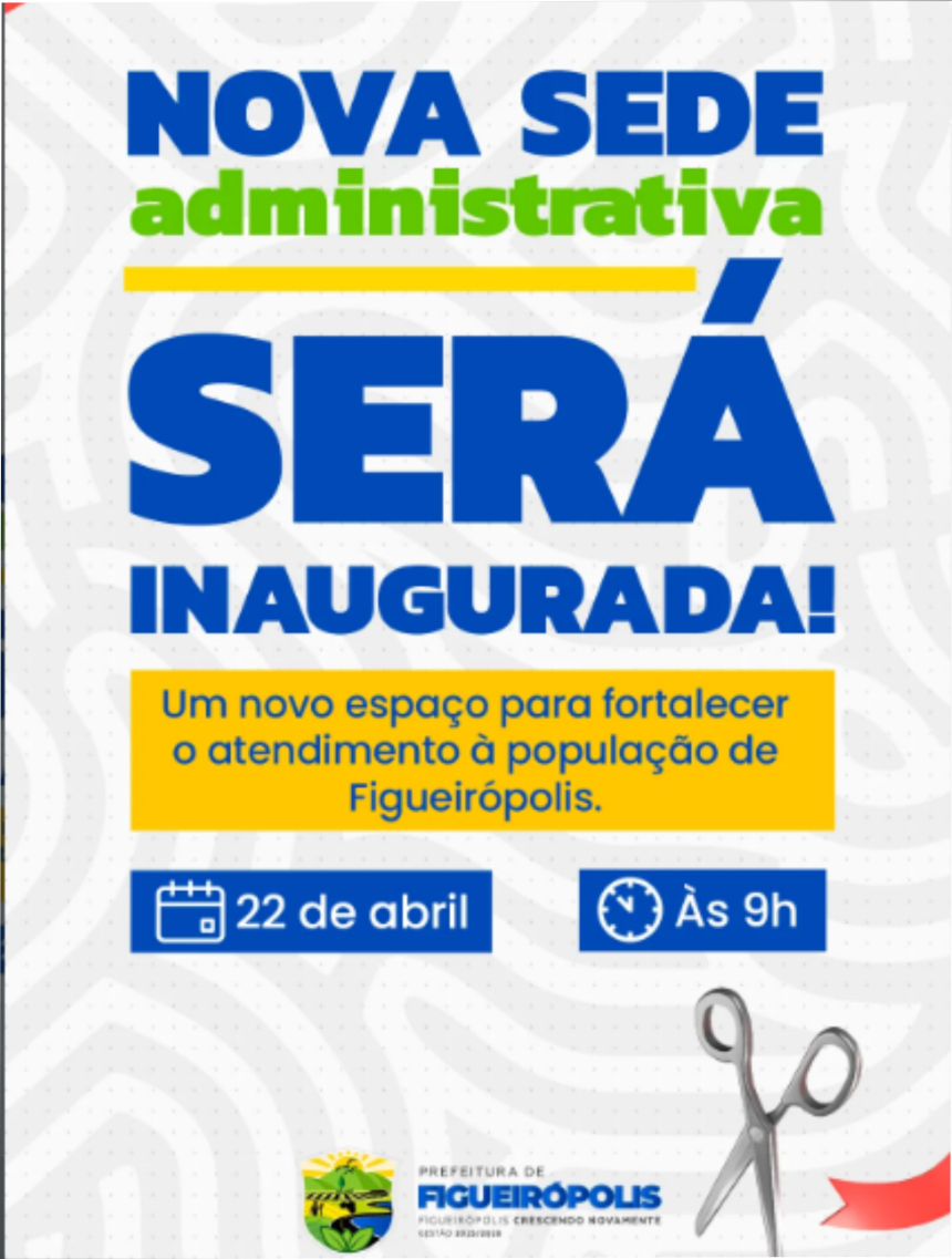 FIGUEIRÓPOLIS-TO – Será inaugurada a nova sede administrativa, um espaço planejado para fortalecer o atendimento à população, com mais organização, eficiência e qualidade nos serviços públicos.