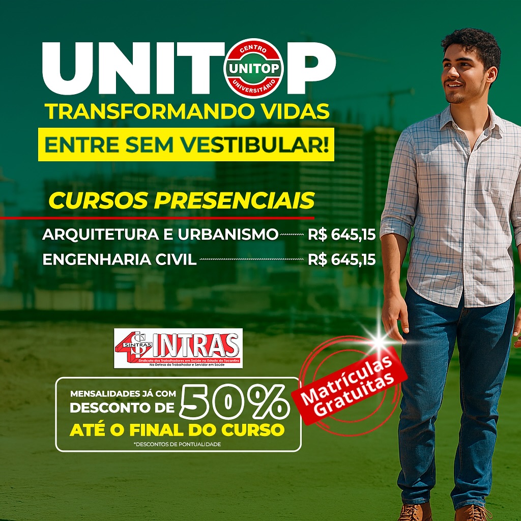A UNITOP é reconhecida por sua estrutura moderna, corpo docente qualificado e metodologia que alia teoria à prática. Essa parceria com o Sintras é mais uma oportunidade imperdível para quem deseja se destacar no mercado e conquistar novos horizontes.